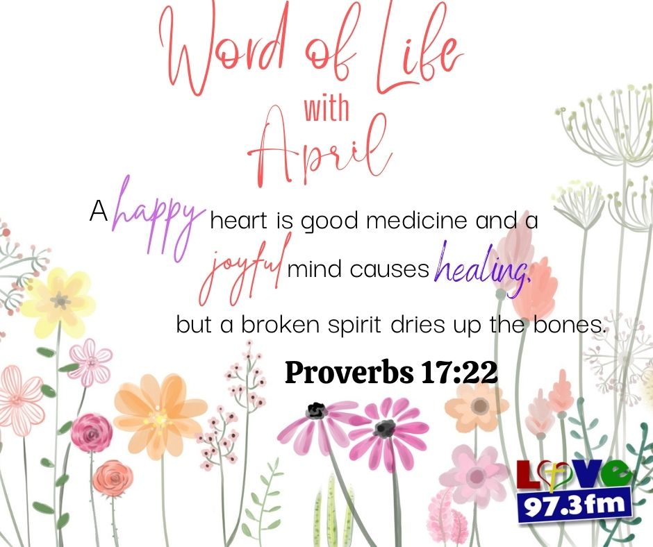 A happy heart is good medicine and a joyful mind causes healing but a broken spirit dries up the bones.