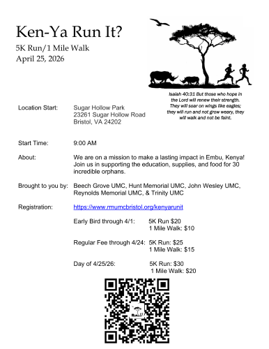 Brought to you by: Beech Grove UMC, Hunt Memorial UMC, John Wesley UMC, Reynolds Memorial UMC, & Trinity UMC