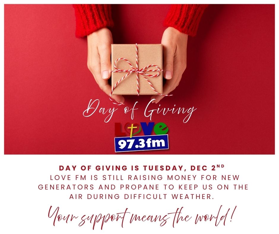 We want to remind you that December 2nd is the Day of Giving. As you think about the organizations you’ll support, would you prayerfully consider making LOVE FM part of your Day of Giving?